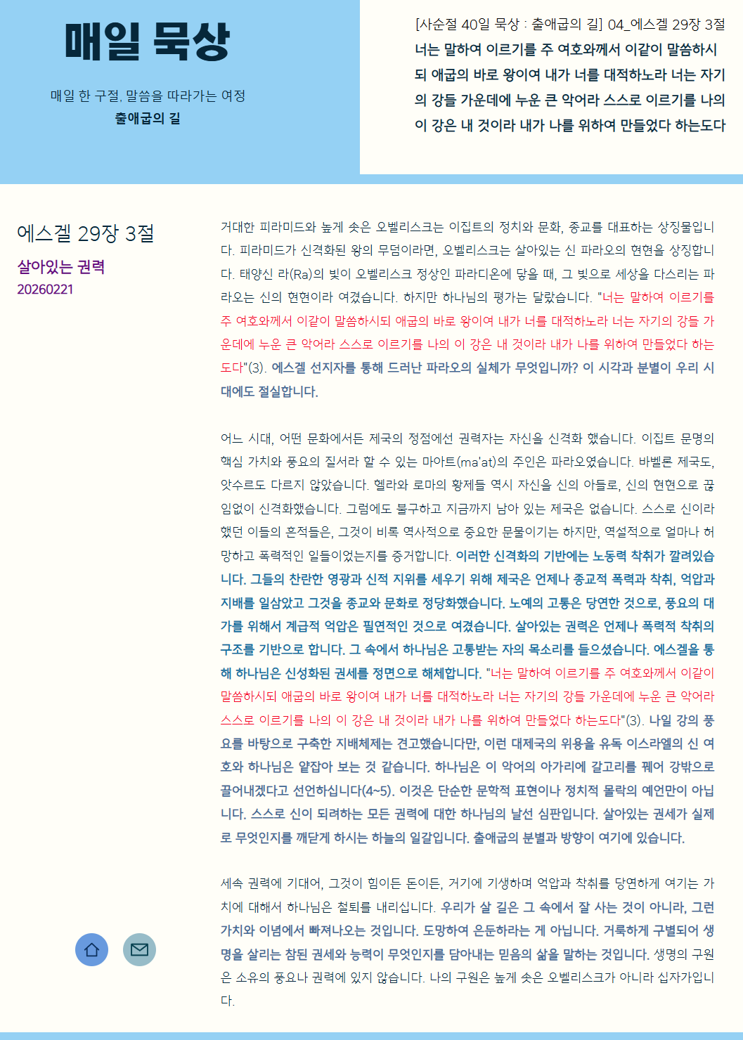 [사순절 40일 묵상 : 출애굽의 길] 04_에스겔 29장 3절